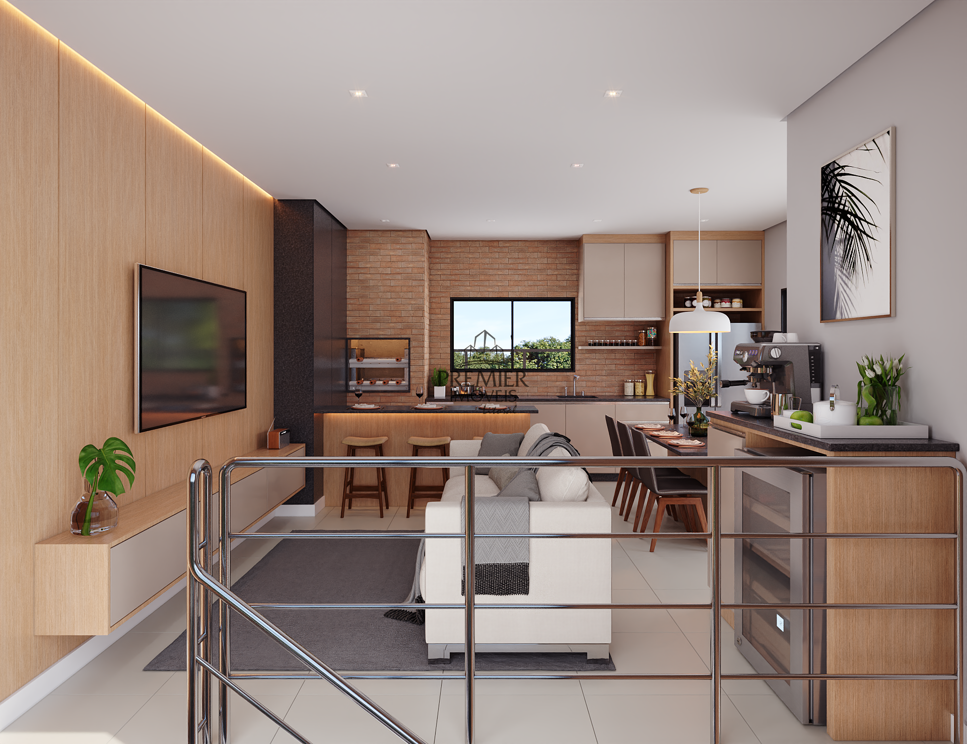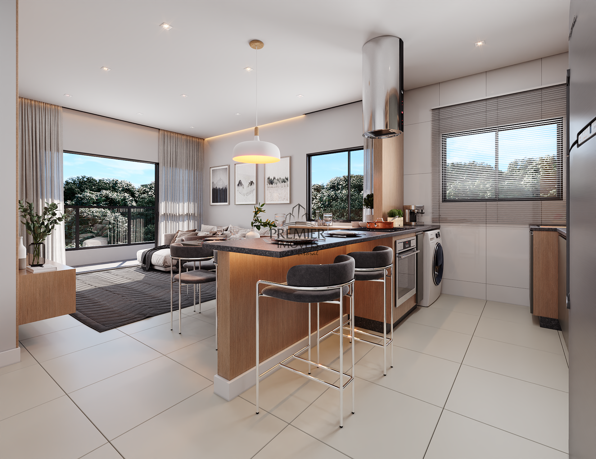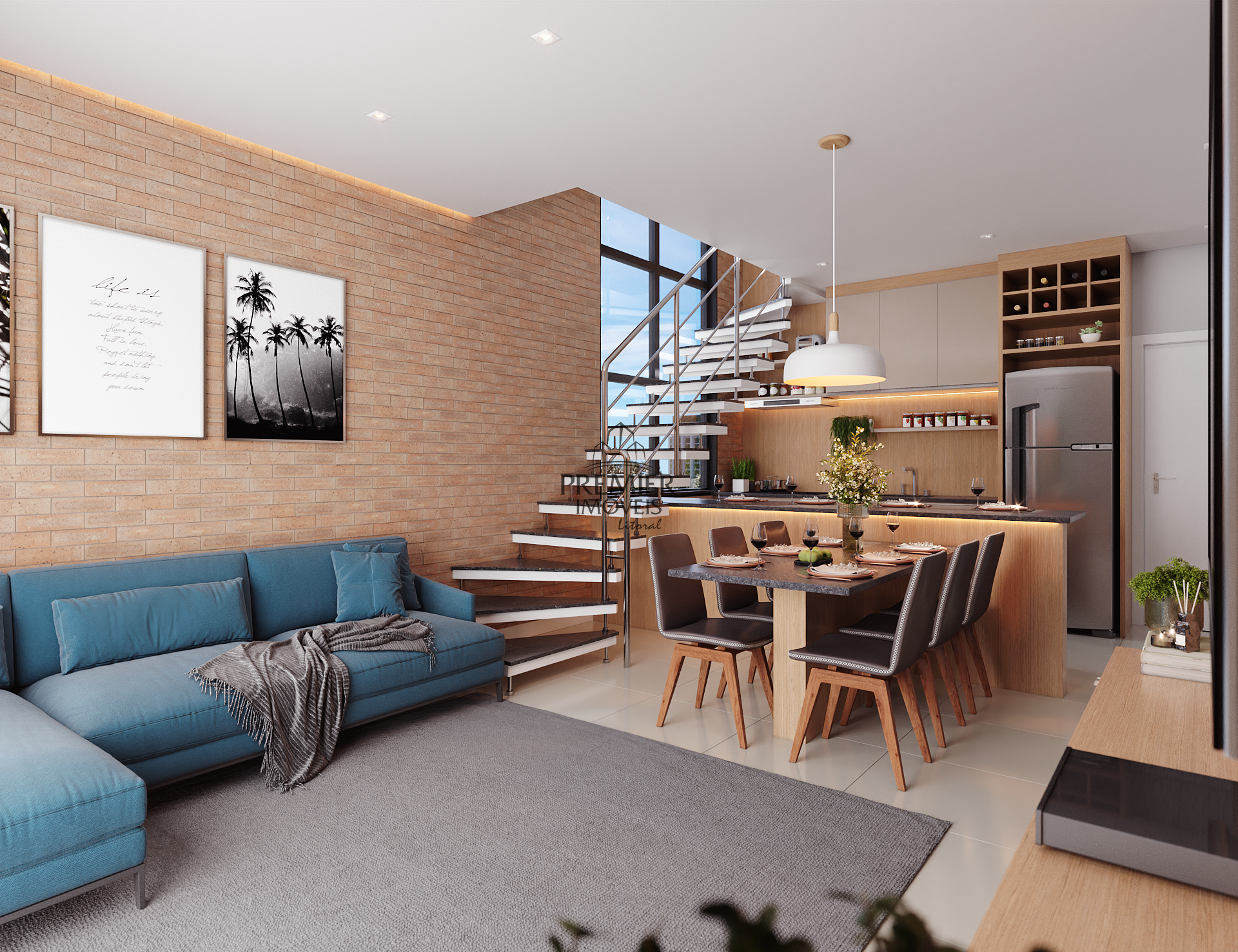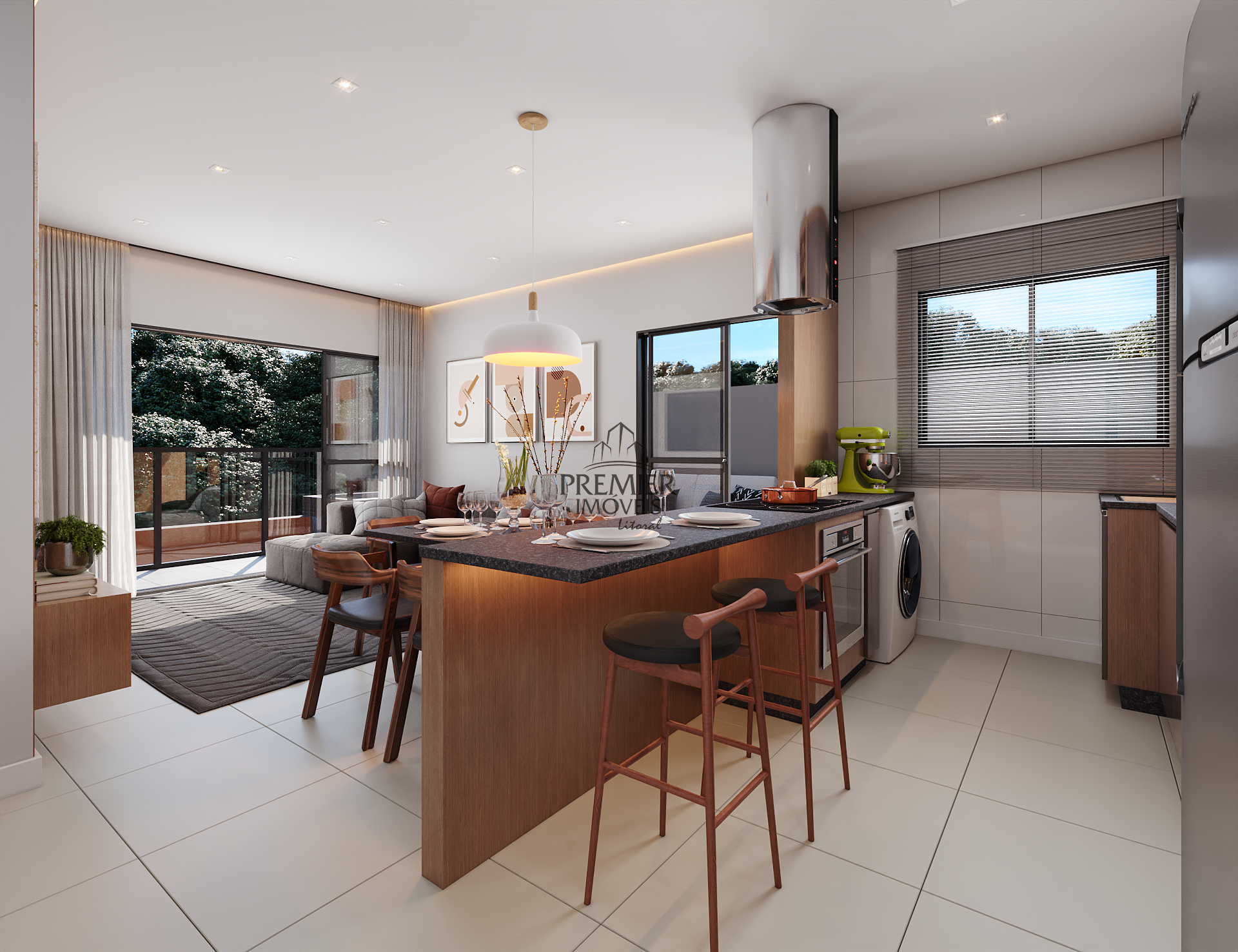 * Sala de estar/ Jantar e cozinha em conceito aberto.
